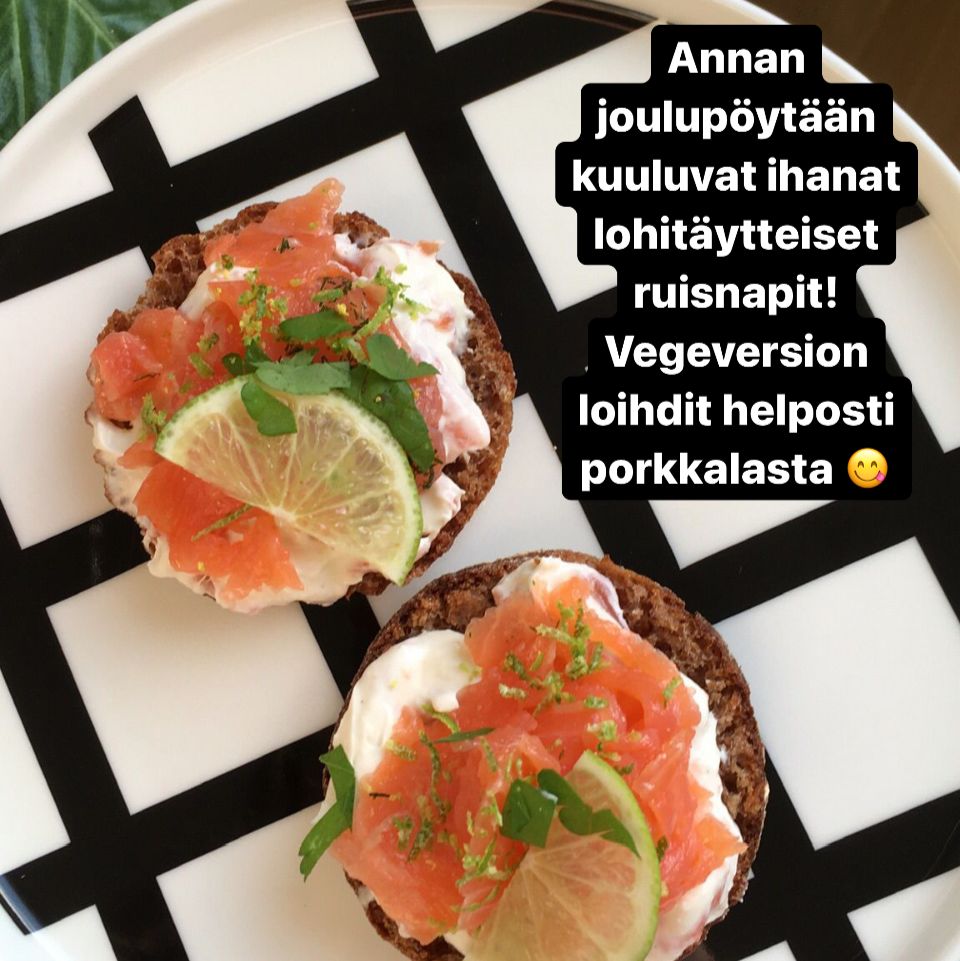 Vegaanisen version saat helpoisti käyttämällä porkkalaa kalan sijaan.